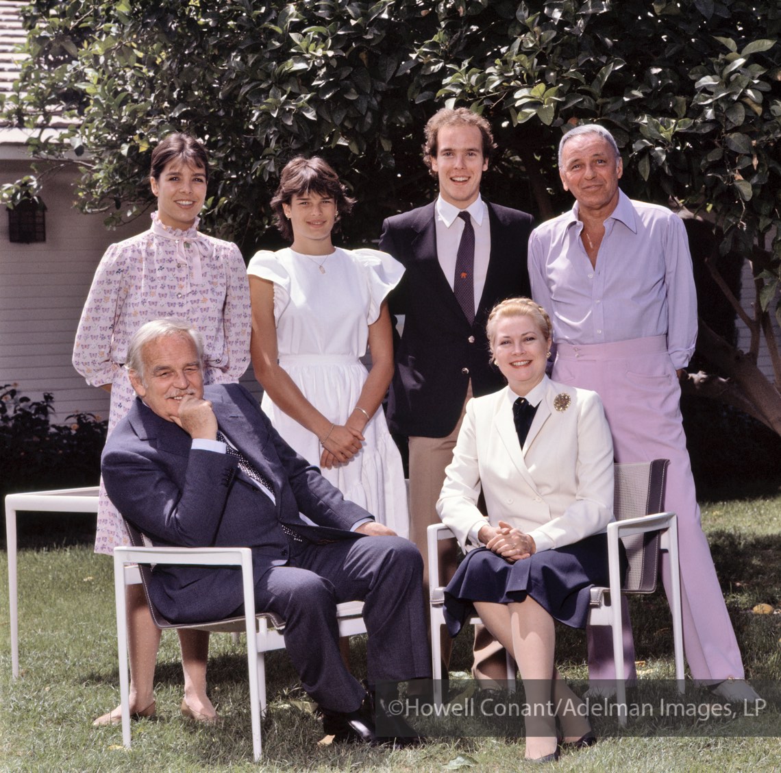 The last portrait, celebrating the Grimaldis’ 25th wedding anniversary in Palm Springs with Frank Sinatra, 1981.
